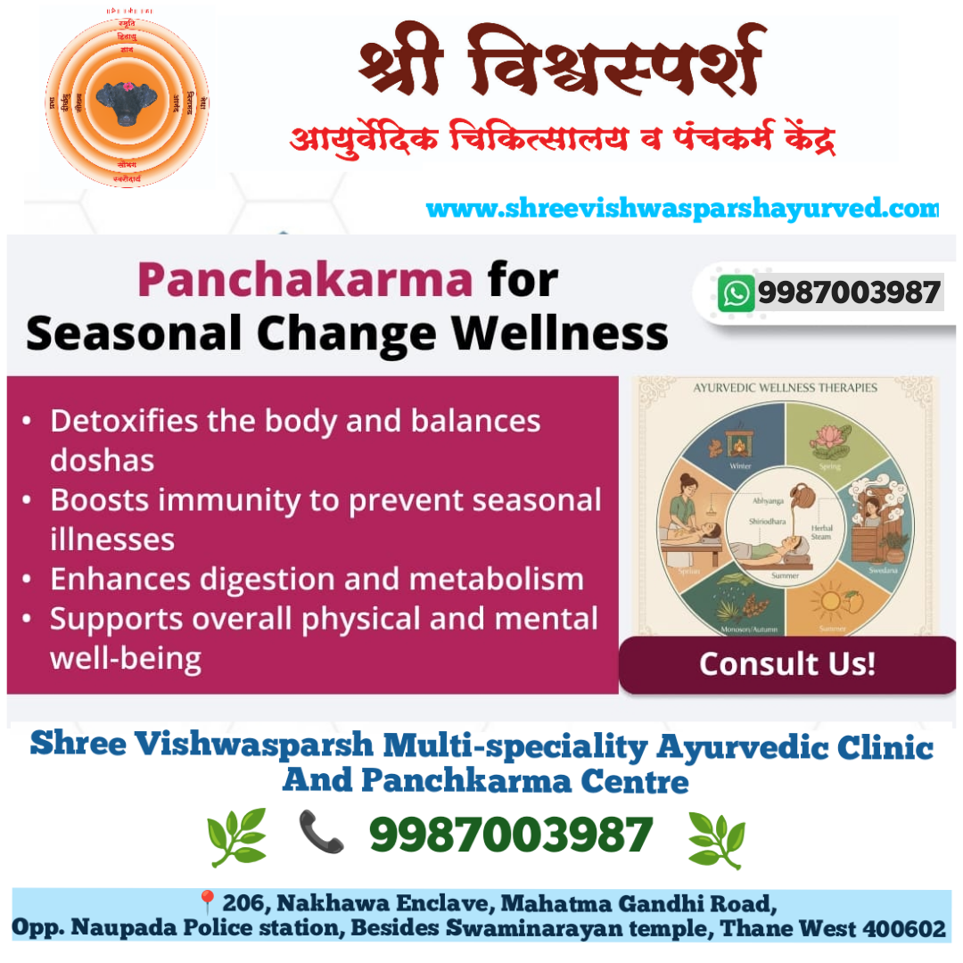 Dr.Kalpana's "Shree Vishwasparsh Ayurvedic Clinic 206, Nakhwa Enclave, second floor, Mahtma Gandhi Road, Opp. Naupada Police Station, Naupada, Thane West 400602. +918048033479 dr.kalpanadalvi@gmail.com